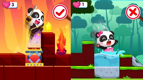 石头不怕火但会沉水下、梯子能悬空但风轻轻吹就跑、木箱包装能飘浮但会被损坏……不一样材料的格子各有利弊,融合实时路况有效配搭,才可以成功抵达终点站!(鼓励孩子的洞察力和策略思维。)