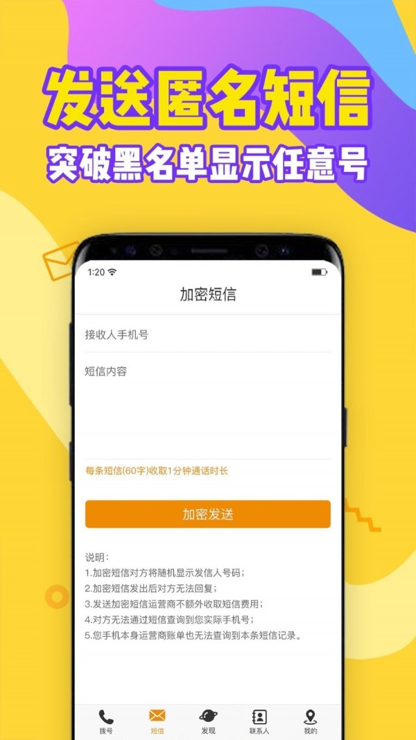手机上通讯业领跑知名品牌!选用军用级加密技术性,集信息加密、闪照、互联网电话、电话音频及防窃听等作用于一身,超清通话,0总流量耗费,不用另一方安裝,随时感受!加密电话,安全性安心。