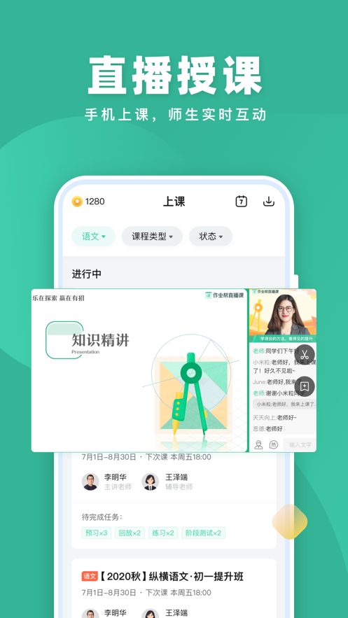 作业帮直播课是一款学习手机软件,给予线上直播课程,质的视频在线教育服务,在家里学习会越来越更为轻轻松松,学习有大招,从此不用愁,是中小学校线上学习指导服务平台。