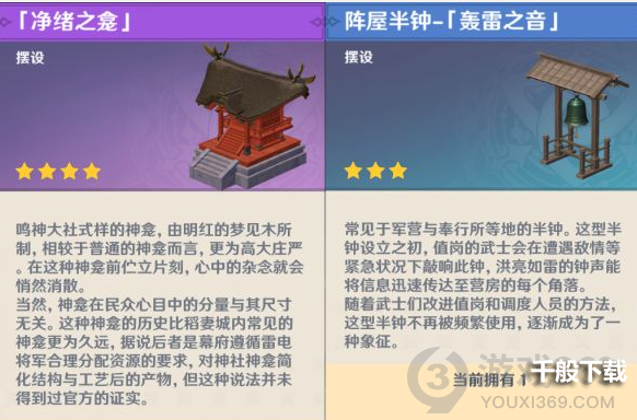 此次2.1版本号共增加9个稻妻设计风格摆设及一个欣赏水池摆设。