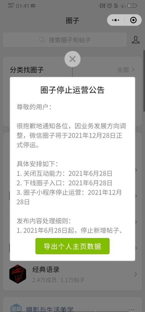微信圈子停运是什么意思?微信圈子停运营事件介绍[多图]微信圈子停运是什么情况?微信圈子停运营是什么原因?近期手机微信公布信息,将于12月28日终止经营微信圈子,很多人见到这一信息表明很疑惑,由于有一些2021-05-30 -