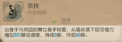 从高处落下后可以增加移动速度,在游戏中可以根据地形使用杂技的特质。