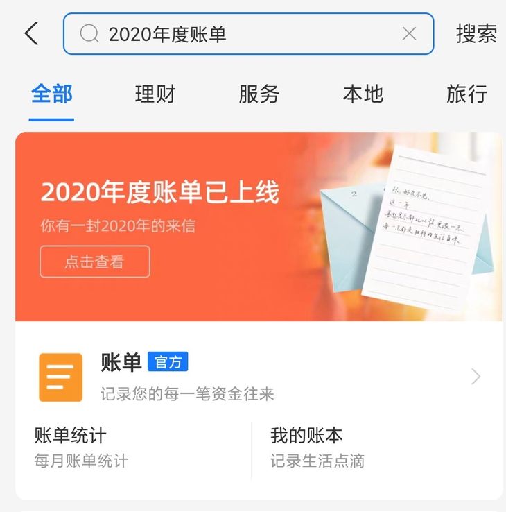 支付宝2020年度账单上线,看看你花了多少钱!