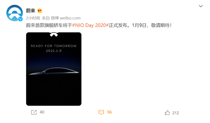 今天,蔚来宣布将于1月9日“ 2020年NIO Day ”正式发布NIO的首款旗舰轿车。