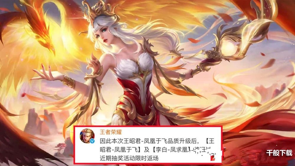在官方网服务承诺曝料的最后一天,凤凰于飞的最后实际效果总算呈现给了玩家,从原画设计和专业技能上看来,新的凤凰于飞的确十分优异,许多 小伙伴们看了以后都赞叹不已,期待官方网能为自己一个下手的机遇,但是老玩家都了解官方网的招数,即然提升凤凰于飞,实际上便是想返场,因此玩家的现在机会来了,由于官方网早已公布了凤求凰和凤凰于飞的返场的信息。