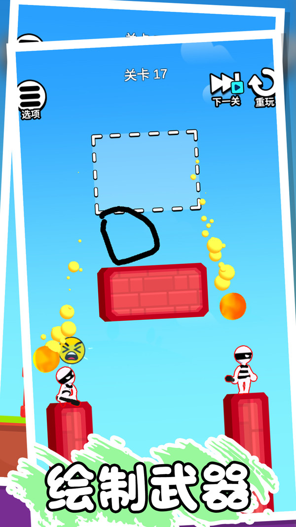 2、海量游戏关卡,可以尽情挑战,可以用手中的画笔画出不同形状的武器。
