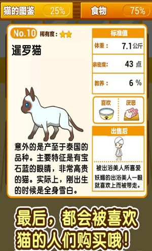 如果你能在Kitty咖啡店的图片指南里看到这么多可爱的小动物,你应该会开心到心都要化掉了。在游戏中,你可以领养一只可爱的小猫,不断为它选择合适的地方生活,让它陪你一起变老。相信很多喜欢抽猫的玩家都会喜欢。快来下载吧!