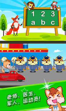 儿童职业游戏通过动画展示各种职业的内容。通过小游戏的方式,让你身临其境,体验各种职业,扮演各种角色!非常好玩的早教益智游戏。当一个大的职业浪潮袭来时,你能感受到职业的喜悦。你可以通过游戏快速的知道每个职业在做什么,可以更好的激发他的思维能力,让你尽快找到自己想做的事情。