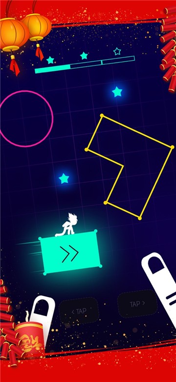 1.在霓虹灯形状之间转动,跳跃和滑动,照亮它们