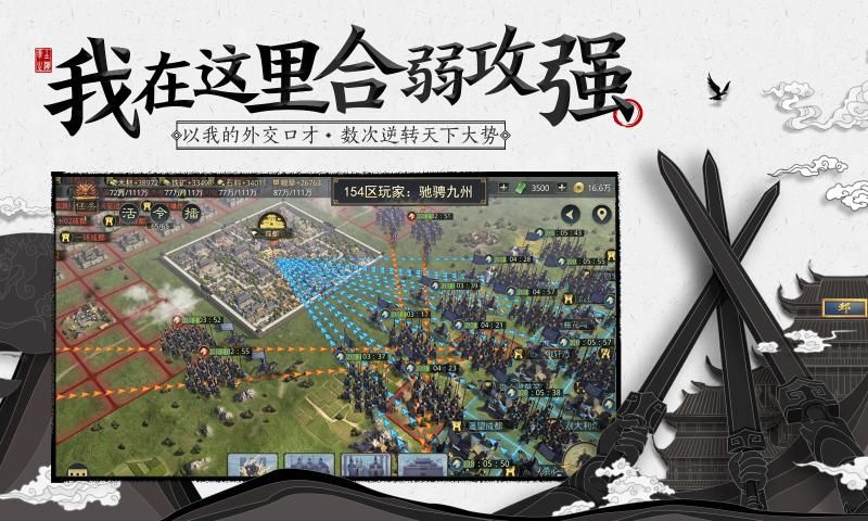 在这里随意动荡不安的三国乱世,沒有山水田园式的日常生活,每一个踏入新征程的人,都想争霸天下。曾国潘说:谋大事儿者,快递首重布局。即是做“平天下”这么大的事,大家便必须非常大的竞技场,才可以盛下充足大的布局——依照真正地形图传奇的汉未十三州,数十万玩家,协作市场竞争,搏一个东都洛阳;22五万格土地资源,十万支军队,在东征西讨中,复原冷兵器时代团体军队,扎寨,分团战斗,就地招兵;几十个联盟,亦敌亦友,适者生存,在不计其数的局中,争作执棋人,或成为棋盘;多个月的賽季时间,从一城而起,立盟,新中国成立,到席卷天下,饱经浮沉,稳扎稳打。大家的玩家在此中挥笔不凡的战事聪慧,也一展其一生经验修练出的布局:劲敌围绕时,远攻近交结友军;人心浮动时,一纸文告定士气;逆风翻盘初败时,收敛性光芒备来日……在命令联盟时,能制订出一套套不逊于大企业完善的管理方法和运行方式 ;在胆识过人时,也注重攻心战之道,运用人民群众社会舆论扇动和分裂对手;在扩大招安时,常晓之便于、以情动人,也可以胆大开启降将;在交涉协议书时,能把握现在而计长久,完成小人群的利润最大化。