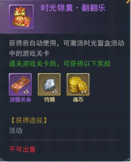 消费盲盒代币,转动时间盲盒自动贩卖机,即可获得武魂纪念币和时间套装奖励。