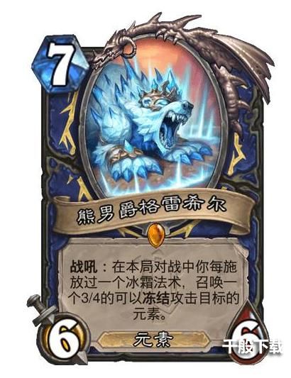 熊男爵格雷希尔的效果是战斗咆哮:在这个游戏中,你每次施放冰霜法术,都会召唤一个3/4元素,可以冻结目标。